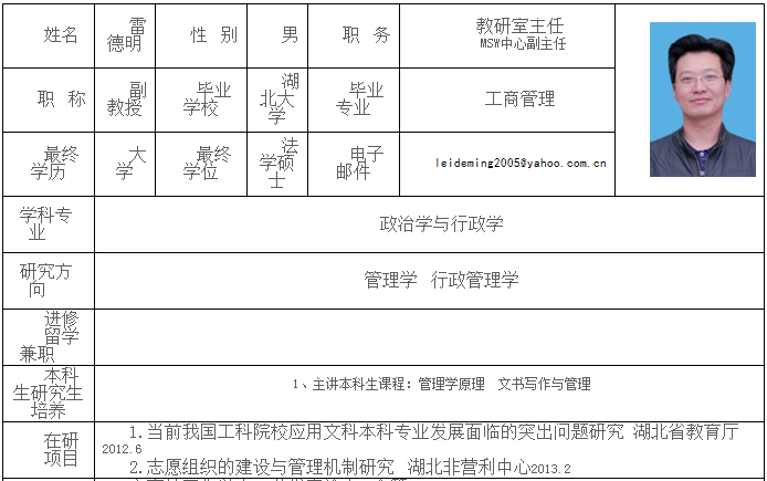 武科大-文法與經(jīng)濟學院副主任--雷德明