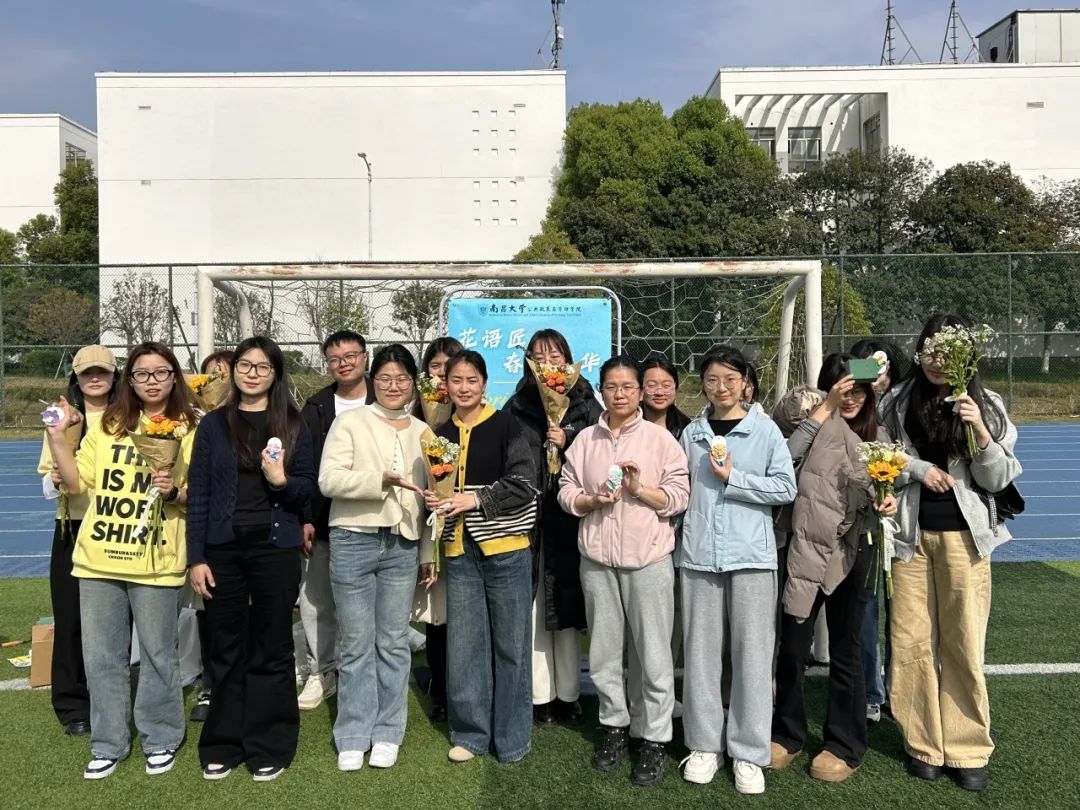 活動(dòng)最后,全體人員手持作品合影留念,綠茵場(chǎng)上的笑靨與春色相映生輝。這場(chǎng)春日之約,不僅是一次美育實(shí)踐,更是一顆埋藏于心的種子,期待未來(lái)在五育融合的土壤中,綻放更多絢麗的青春之花。