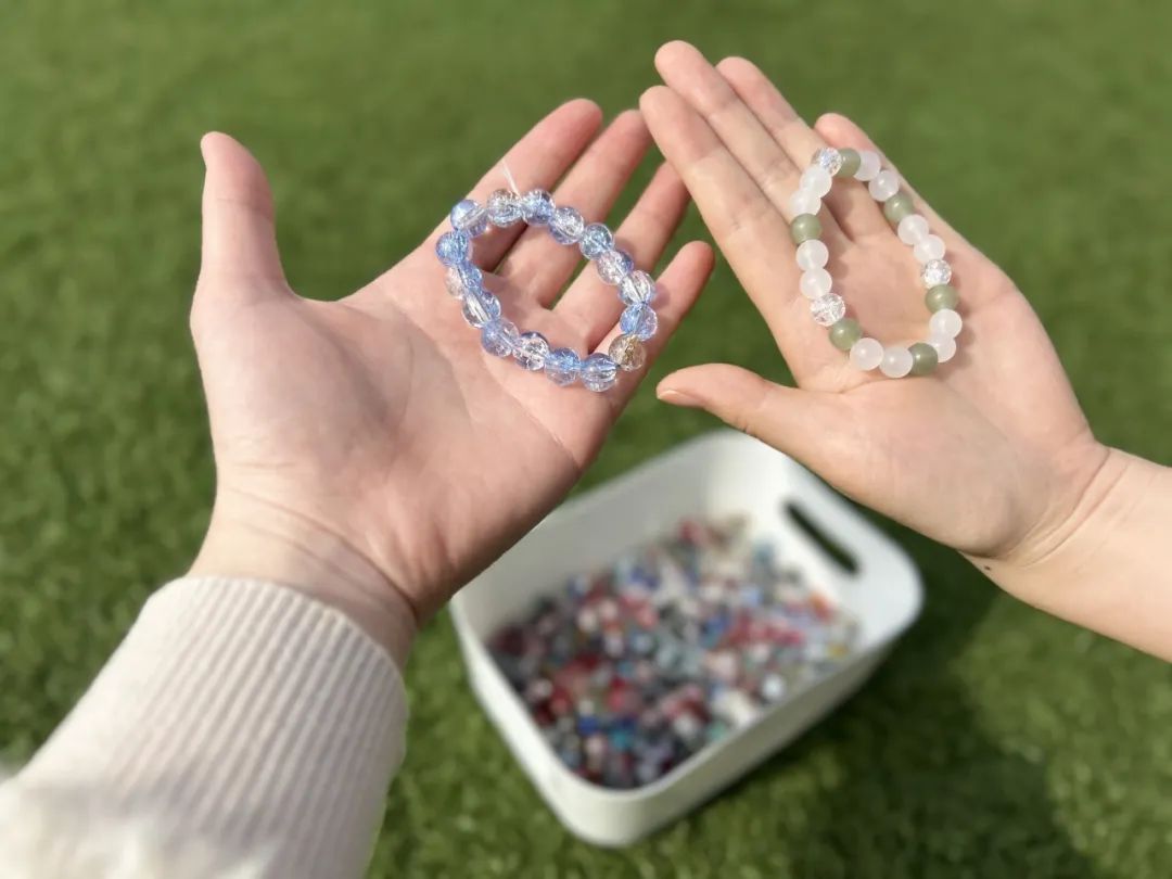 串珠手作區(qū)也同樣吸引了眾多同學(xué)駐足,晶瑩剔透的琉璃珠與編織線(xiàn)在指尖穿梭,化作手鏈、掛飾等精美工藝品。活動(dòng)將傳統(tǒng)手工藝與現(xiàn)代設(shè)計(jì)結(jié)合,讓參與的同學(xué)們?cè)趯?zhuān)注創(chuàng)作中體會(huì)匠心精神的傳承,更在指尖流淌的創(chuàng)意中找到了心靈的寧?kù)o。